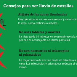 Además, conviene dirigir la mirada en todo momento hacia la zona más oscura del cielo y dejar 10 minutos para que la vista se acostumbre. Por ello, es aconsejable no utilizar móviles y tabletas durante la espera y conviene apuntar con la vista en la dirección opuesta a la posición de la Luna (para huir del brillo que desprende).